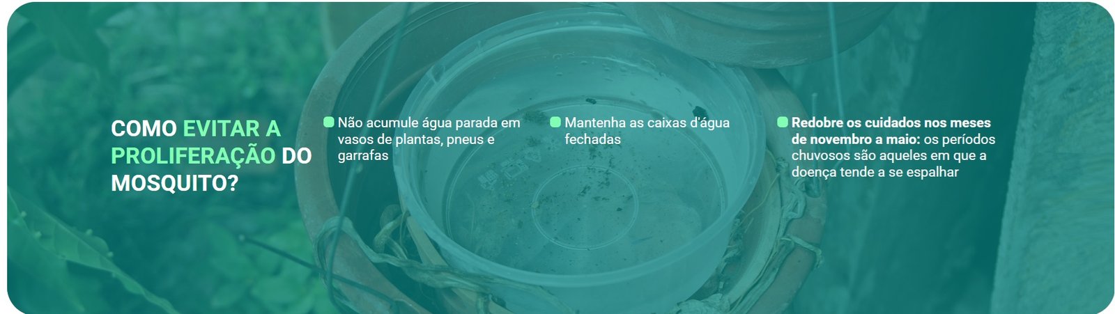 A dengue é um problema de saúde pública no Brasil, principalmente no verão. É uma doença infecciosa transmitida pelo mosquito Aedes Aegypti, que causa sintomas tanto leves quanto graves, e pode levar à morte. O mal-estar da doença pode durar até dez dias, mas dependendo do caso, permanece por semanas.