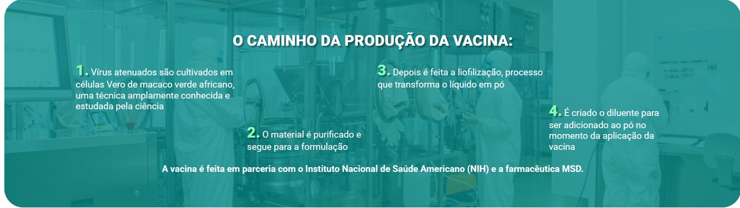 A tecnologia utilizada pelo novo imunizante é a de vírus vivo atenuado, que é segura e já empregada em diversas outras vacinas em uso no Brasil e no mundo. A indicação aprovada é para pessoas na faixa etária de 12 a 59 anos. Esse perfil ainda pode ser ampliado no futuro, a depender de novos estudos.