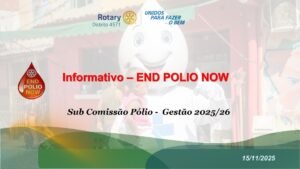 Caros companheiros, trouxemos aqui a atualização de Setembro a apresentação da sub comissão da Pólio e a atualização do mês. Esta aprentação irá ser feita